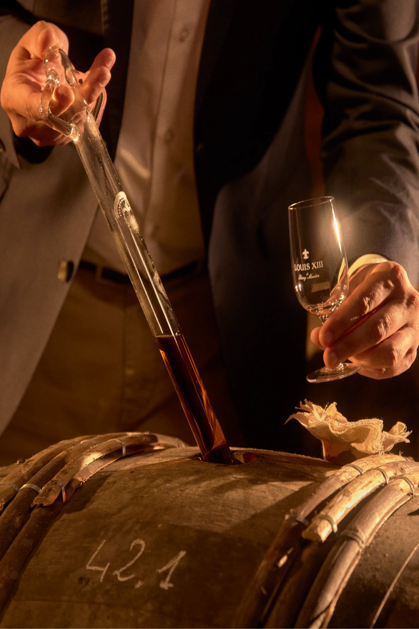 The spear also creates a symbolic connection between the host and generations of Cellar Masters. The act of tranferring the precious liquid from decanter to glass, delicately emulates the role of the LOUIS XIII Cellar Masters, who has extracted eaux-de-vie from the tierçon using a glass spear for decades. By echoing this gesture of transmission – one that has been passed down from each generation to the next – through the LOUIS XIII ritual, we witness a profound and meaningful act of beauty.